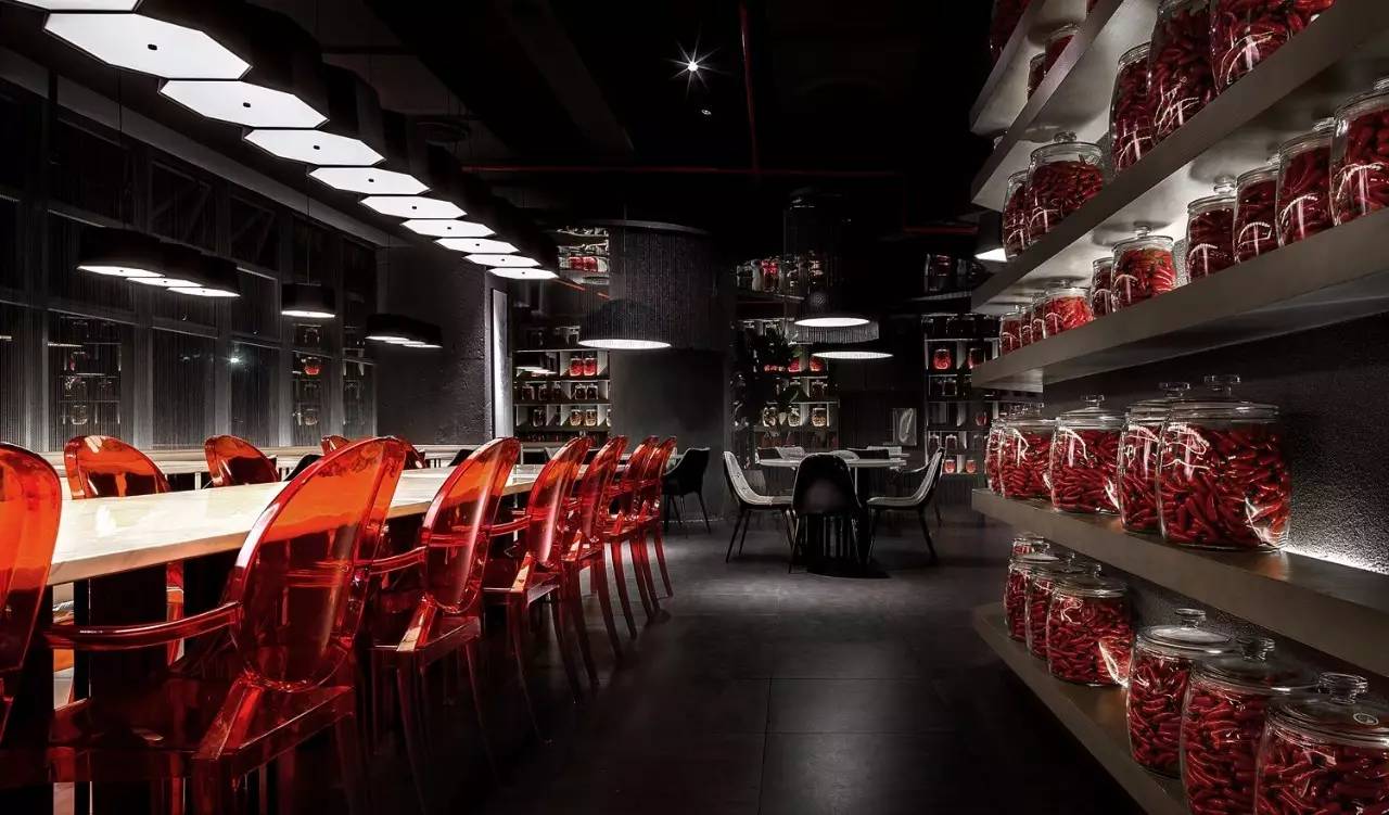 小辣椒湘菜餐廳空間,是以空間的多樣性為主軸。餐廳創(chuàng)始人提出以辣椒裝飾空間,設計師通過對“小辣椒”這個設計字符的不斷重復,給空間增加藝術畫及創(chuàng)意燈飾,成為空間裝飾的細節(jié)。整個空間的體量不算特別大,但有下沉式空間設計。用于分割空間的雨滴式珠簾,似動而靜的雨滴隔斷簾營造親密又放松的用餐空間。