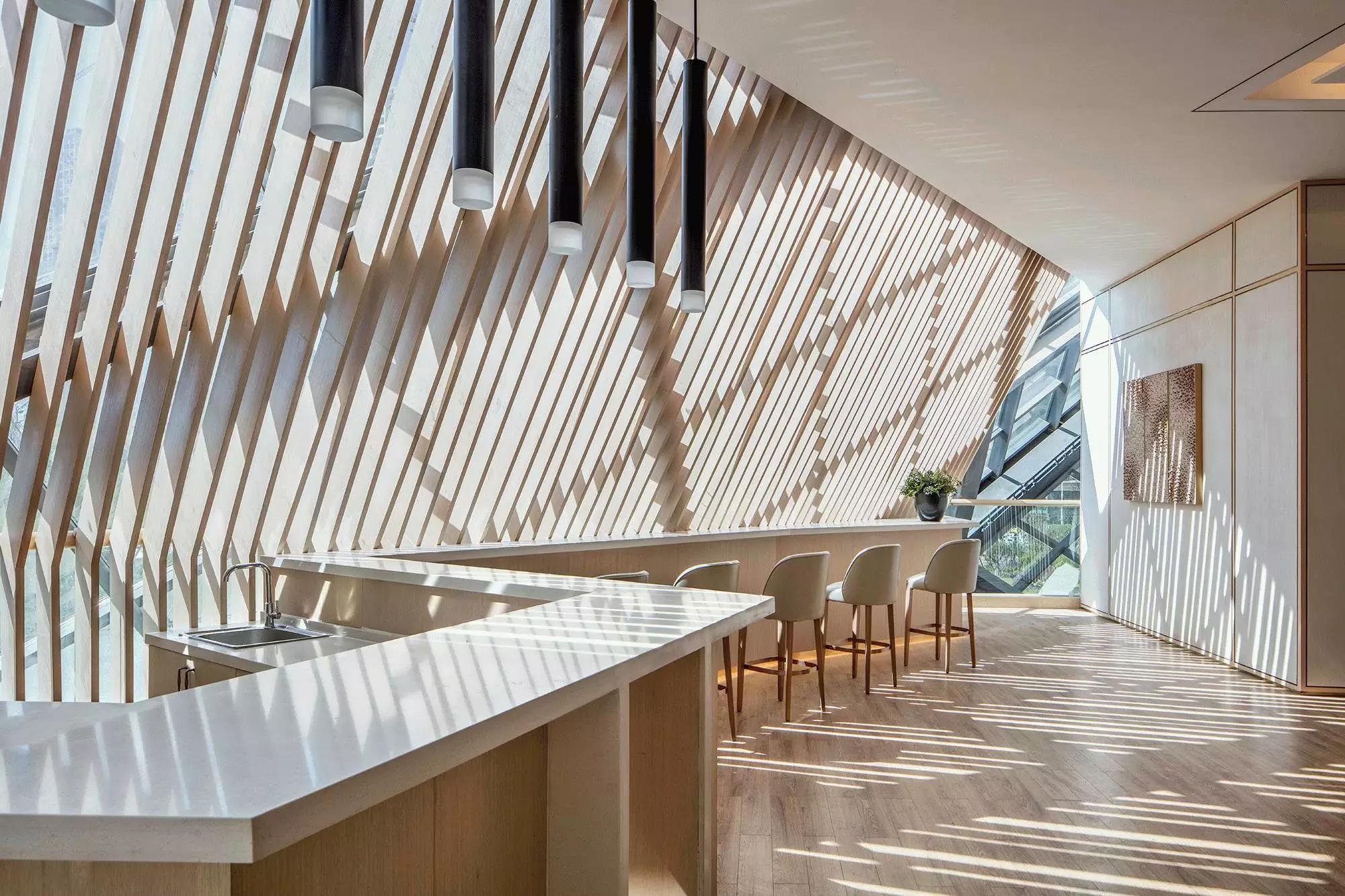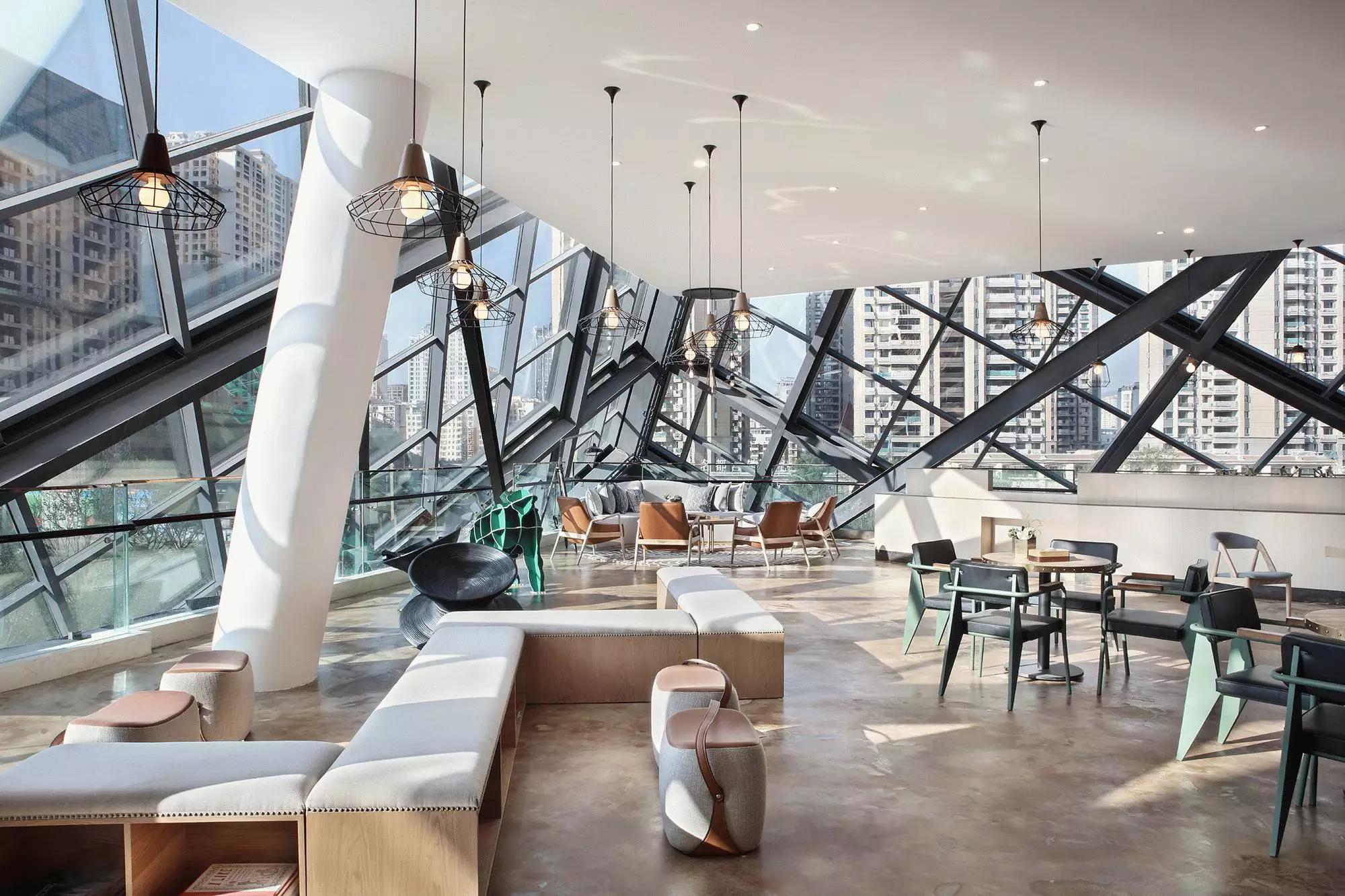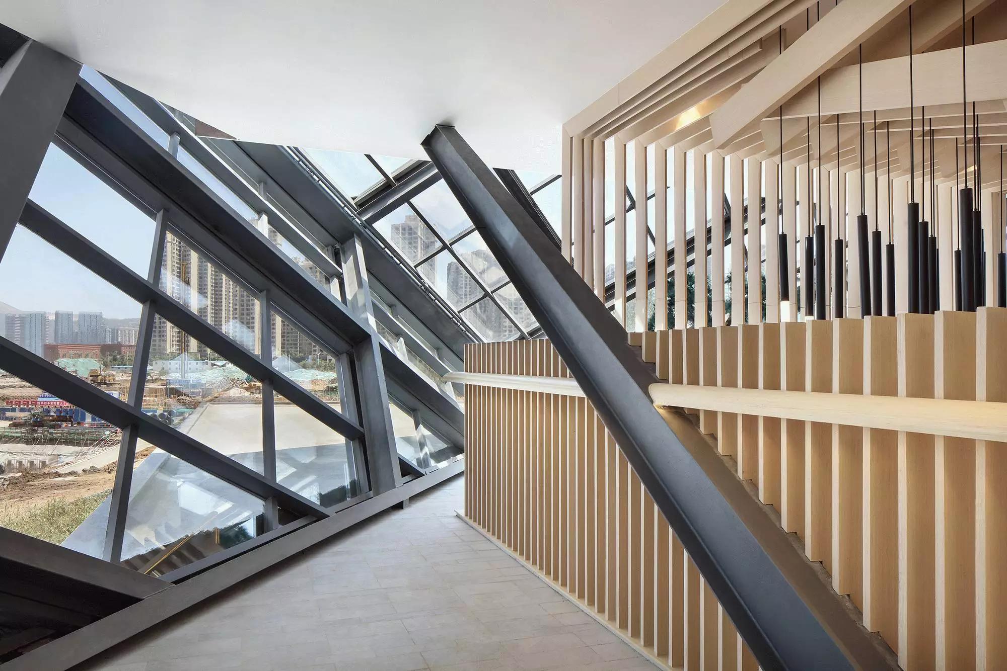項目原屬昆明聯(lián)想科技城,后由融創(chuàng)地產(chǎn)接盤,他們希望將該建筑打造成為集辦公、商業(yè)、展示等多元化為一體的空間,并使其成為昆明新的城市地標建筑。接手本案的主創(chuàng)設計師是默存設計的季青濤,作為具有建筑師背景的主創(chuàng)設計師,從建筑空間的思維從事空間設計便成為一種必然。在原有“盒子”空間的內(nèi)部,設計師以木結(jié)構對空間進行了重組和分割。