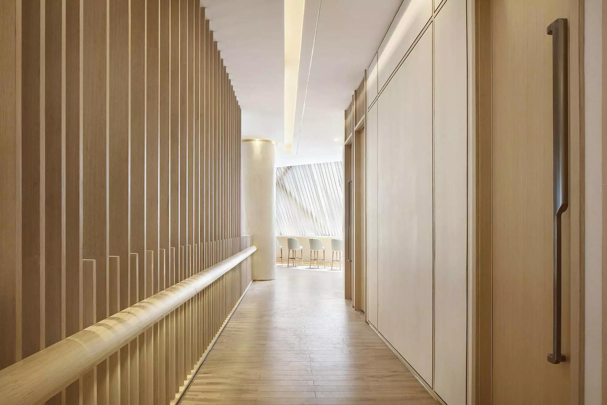 這種處理方式,仿佛原有建筑內(nèi)又套了一個建筑,觀者從外入內(nèi)將面臨到巨大的空間反差。光影從結(jié)構衍生出來,也是結(jié)構的一部分。采用最簡單的平行結(jié)構,光影作用下卻出現(xiàn)了復雜的韻律感受,并根據(jù)光線移動在一天內(nèi)發(fā)生轉(zhuǎn)變。