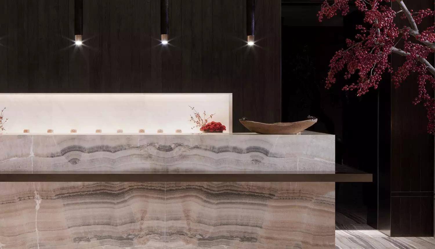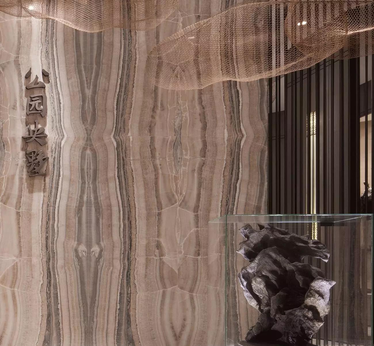 本案以石頭記,石、玉等文化底蘊為依托,以中國貴族式建筑園林空間意趣的室內(nèi)化為框架,從大觀園的軒、館、院、齋等建筑中提煉文化意蘊、色彩、藝術(shù)、布局、材質(zhì)等為元素,通過現(xiàn)代東方禪意美學(xué)的組合方式,將尊貴,私密,自然,精神滋養(yǎng)等理念貫穿所有空間,呈現(xiàn)出純凈高貴的意象之美。
