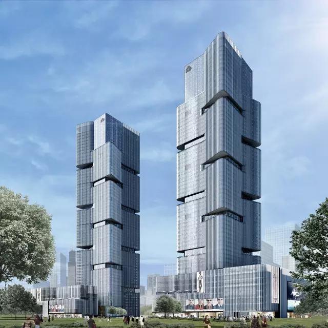兩棟超高層大廈樓體采用交錯參差的結(jié)構(gòu),輕巧精致而又動感十足,柔和的圓弧風(fēng)車狀外形與層疊的建筑元素使整個建筑外觀高貴優(yōu)雅、輕靈通透,具有強烈的視覺沖擊力,成為一道令人驚嘆的城市天際線。